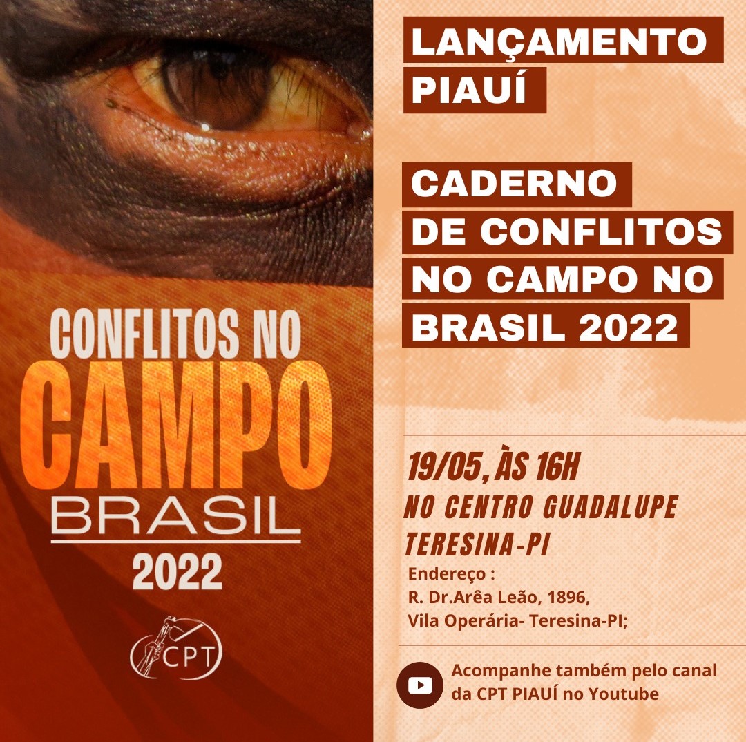 Diante disso, a Comissão Pastoral da Terra – Regional Piauí torna público os dados dos Conflitos no Campo no estado no dia 19 de maio, às 16h, no Centro Guadalupe em Teresina-PI. A CPT PI apresenta o relatório anual, “Caderno de Conflitos no Campo Brasil 2022”, divulga dos dados de conflitos no campo no Piauí e lança a Campanha Contra a Violência no Campo. O evento é parte da programação do curso de Juristas Populares que acontece de 19 a 21 de maio na capital.
