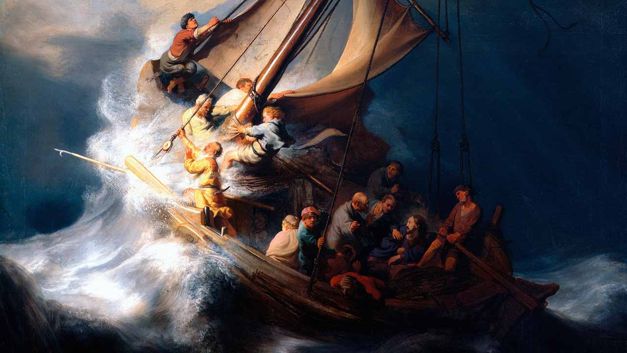 Vento e mar são enfrentados como se enfrenta Satanás. A ação de Jesus é típica de Deus no Primeiro Testamento. Só Deus tem o poder de dominar águas e vento, pois é o Criador. Jesus age com o poder de Deus. Jesus é chamado a despertar do sono para dominar o mar, assim como Deus, Senhor do céu, da terra e do mar. Naquela época, o poderoso rei Antíoco Epífanes se julgava senhor do vento e do mar.
