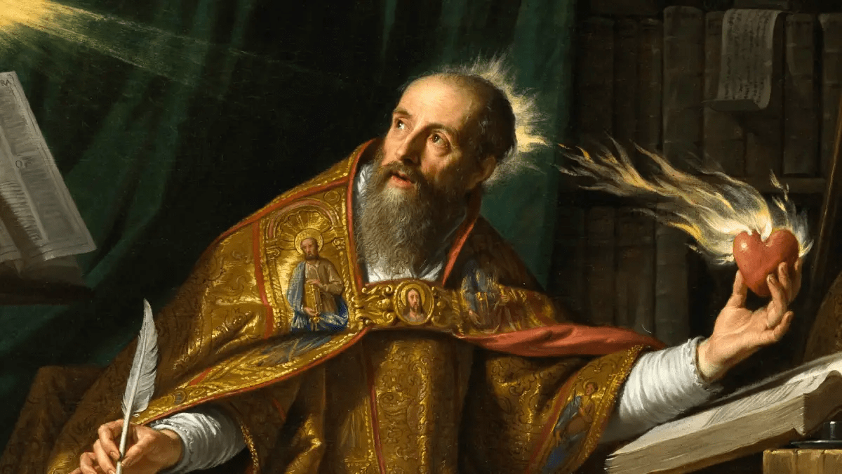 Também nas Confissões, no livro nono, nosso Santo reporta uma conversa com a mãe, Santa Mônica, cuja memória se celebra na próxima sexta-feira, depois de amanhã. É uma cena muito bonita: ele e sua mãe estão em Óstia, em um hotel, e da janela veem o céu e o mar, transcendem céu e mar, e por um momento tocam o coração de Deus no silêncio das criaturas. E aqui surge uma ideia fundamental no caminho para a Verdade: as criaturas devem silenciar, deve prevalecer o silêncio, em que Deus pode falar. Isso é verdade ainda mais em nosso tempo: há uma espécie de medo do silêncio, do recolhimento, do pensar as próprias ações, do sentido profundo da própria vida, frequentemente se prefere viver o momento fugaz, iludindo-se de que traz felicidade duradoura, prefere-se viver assim, pois parece mais fácil, com superficialidade, sem pensar; há medo de buscar a Verdade ou talvez haja medo de que a Verdade seja encontrada, que agarre e mude a vida, como aconteceu com Santo Agostinho.
