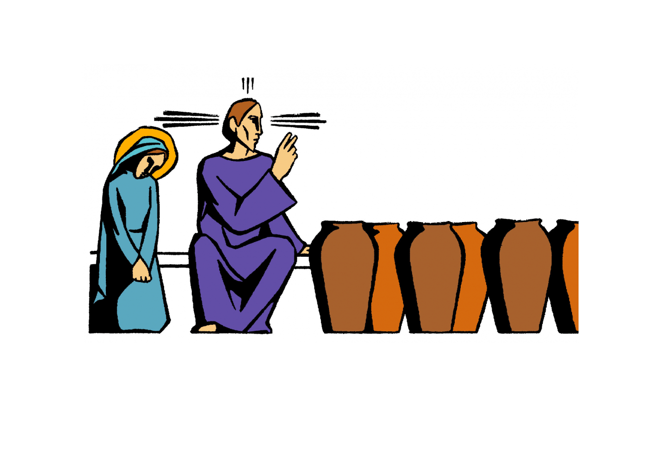 A partir da constatação da Mãe e da sua ordem aos que estavam servindo, o evangelista prossegue denunciando ainda mais a esterilidade da religião de Israel: «Estavam seis talhas de pedra colocadas aí para a purificação que os judeus costumam fazer. Em cada uma delas cabiam mais ou menos cem litros» (v. 6). Essas talhas – jarros, potes – de pedra simbolizam a Lei; estavam vazias porque a Lei tinha chegado ao seu limite; através delas, os judeus faziam ritos de purificação, mas não se encontravam verdadeiramente com Deus. De fato, a expressão «a purificação que os judeus costumam fazer» indica toda a situação de carência em que Israel se encontrava. A necessidade de purificar-se indica que eles não se sentiam plenamente em comunhão com Deus, não bebiam do seu amor, que é o que realmente purifica o ser humano. A relação que a religião da Lei proporcionava era superficial e momentânea, não gerava laços de comunhão. A grande capacidade das talhas – cerca de cem litros cada uma – indica ainda mais a profundidade daquela decadência religiosa. Era necessária muita água para a purificação, e era uma purificação apenas exterior, não alcançava o coração. E mesmo assim as talhas estavam vazias. Isso quer dizer que nem mesmo aquela relação superficial estava garantida. Criava-se um abismo entre a religião ritualista e o Deus amoroso, que é Criador e Pai. A constatação desse abismo ficará mais evidente no episódio seguinte, quando o evangelista vai narrar a denúncia de Jesus ao templo de Jerusalém, com a expulsão dos cambistas e vendedores (Jo 2,13-22). Naquela ocasião, ao invés de purificar o templo, como apontam algumas interpretações, Jesus propõe a destruição completa.