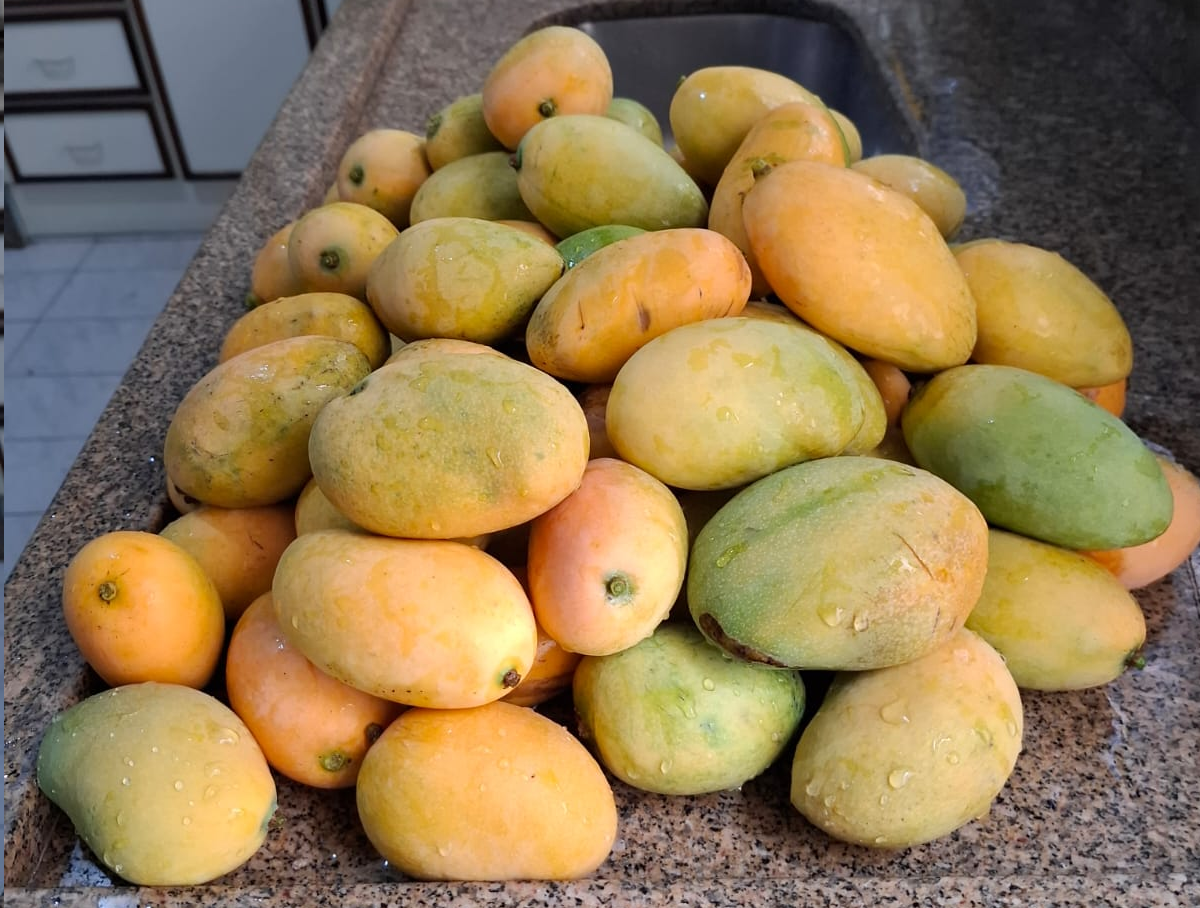 Hoje, em minha caminhada diária, bem cedo, passei em por rua onde ainda existem várias mangueiras tanto nas ruas quanto nos quintais e a quantidade de mangas caídas no chão é enorme, em apenas uma árvore coletei nada menos do que 67 frutas (mangas) que vou utilizar para fazer suco.