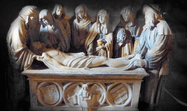 O crucificado é sepultado, Jesus desce aos infernos