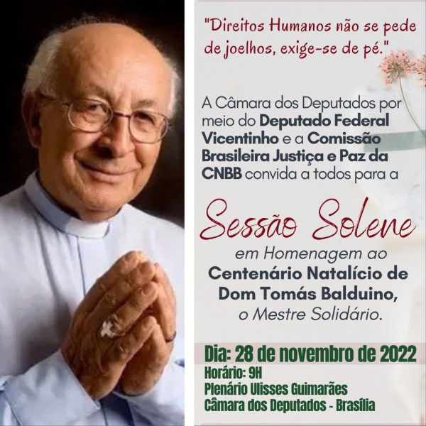 No dia 28 de novembro, próxima segunda-feira, a partir das 9h00, será realizada na Câmara dos Deputados, em Brasília (DF), uma sessão solene em homenagem ao centenário de Dom Tomás Balduino. A homenagem foi proposta pelo deputado Vicentinho, do PT. Bispo fundador do CIMI (Conselho Indigenista Missionário) e da CPT, Dom Tomás fez sua páscoa... Continuar Lendo →